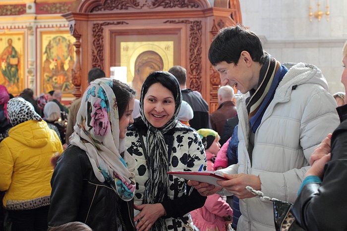 В праздники Благовещения Пресвятой Богородицы и Входа Господня в Иерусалим портал «Приходы» провел опрос «Пасхальная одежда». Прихожане Спасо-Преображенского собора Хабаровска, Никольского собора Красноярска, Покровского собора Шахт, храма пророка Илии в Черкизове Москвы стали участниками эксит-поллов, ответив на несколько необычных вопросов, посвященных пасхальному гардеробу.