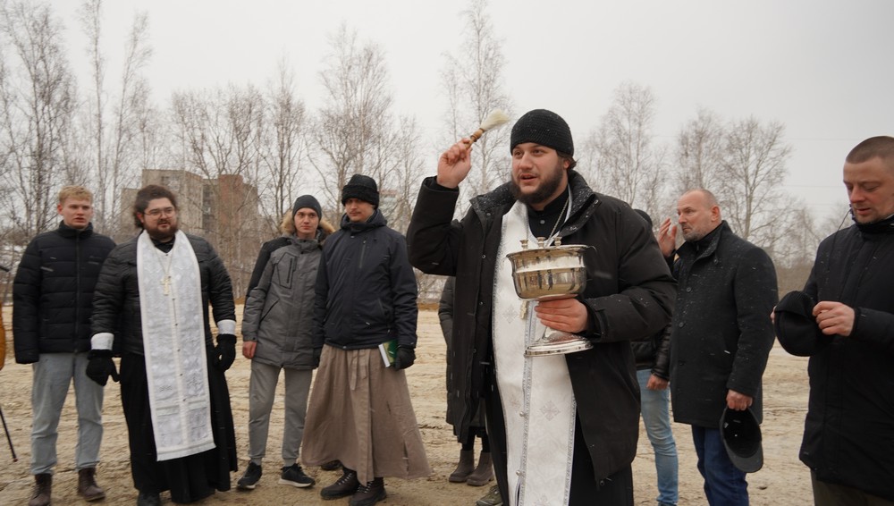 После молебна священник окропил святой водой строительную площадку.