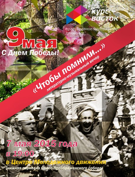 7 мая 2015 года к празднованию 70-летия со Дня Победы в Великой Отечественной войне молодежное движение «Курс-Восток» проводит литературно-музыкальный вечер «Чтобы помнили…».