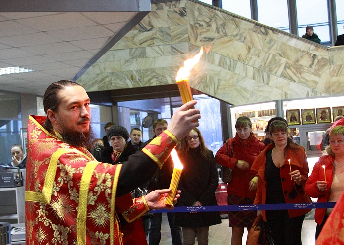 Благодатный огонь из Иерусалима доставлен в Хабаровск. 16 апреля 2012г.