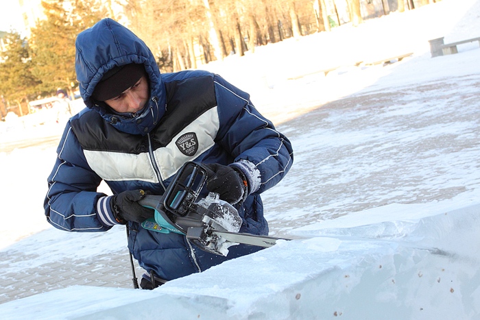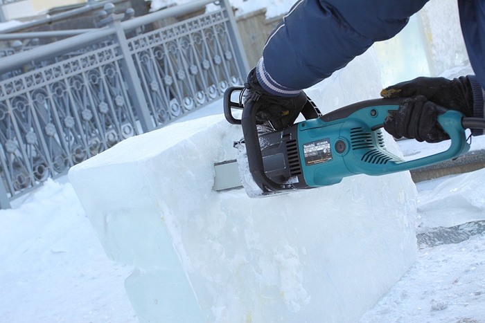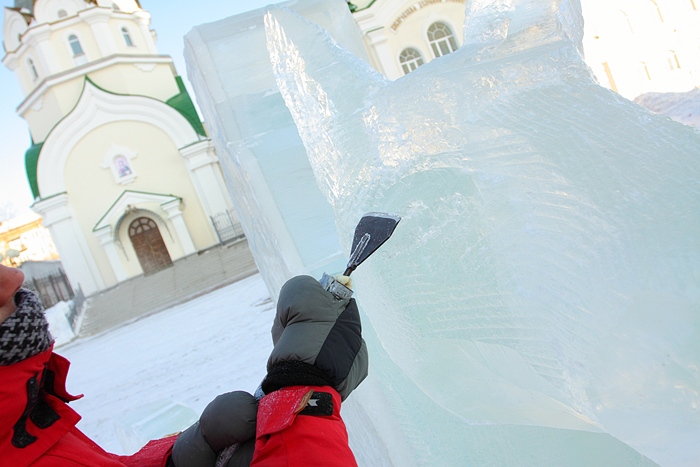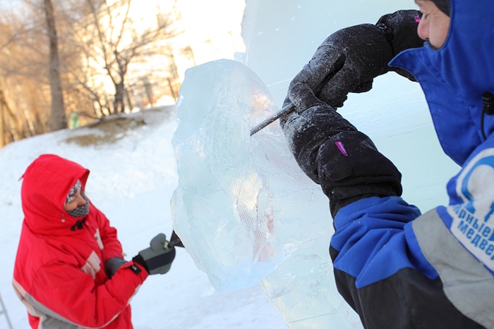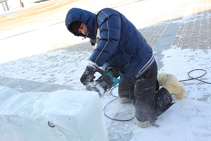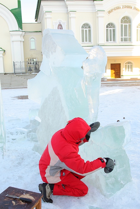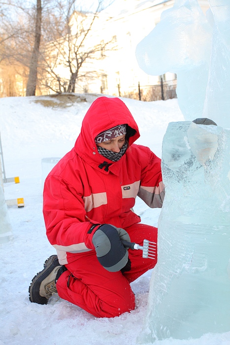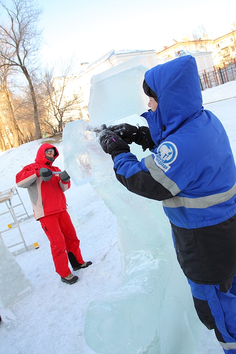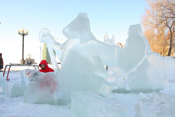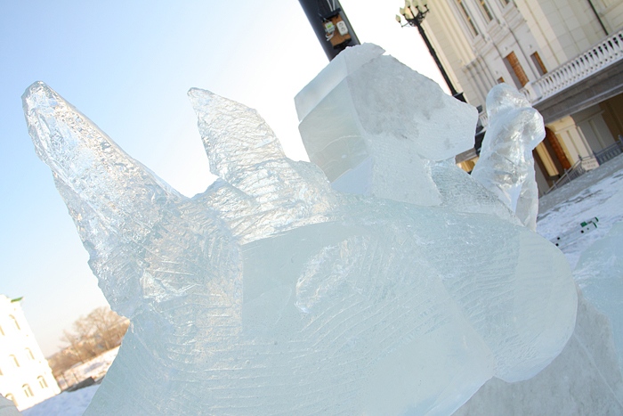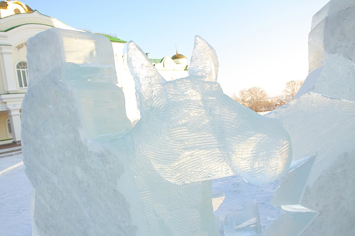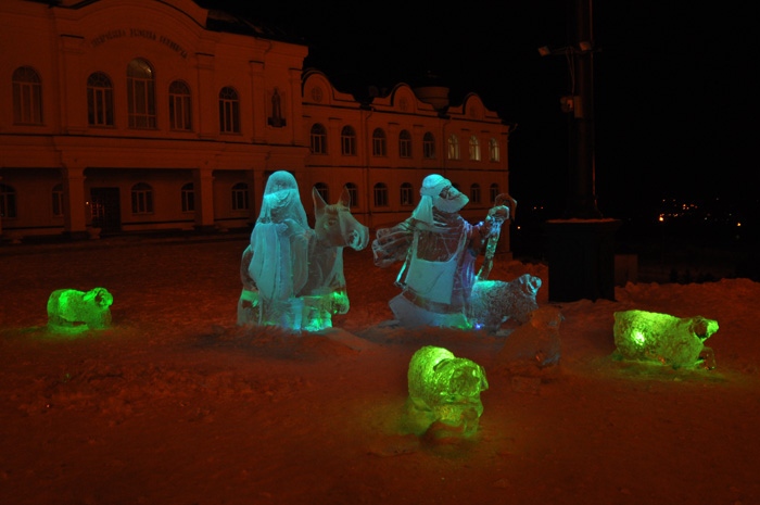 Около Спасо-Преображенского кафедрального собора появились ледовые фигуры. 3 января 2014 год.