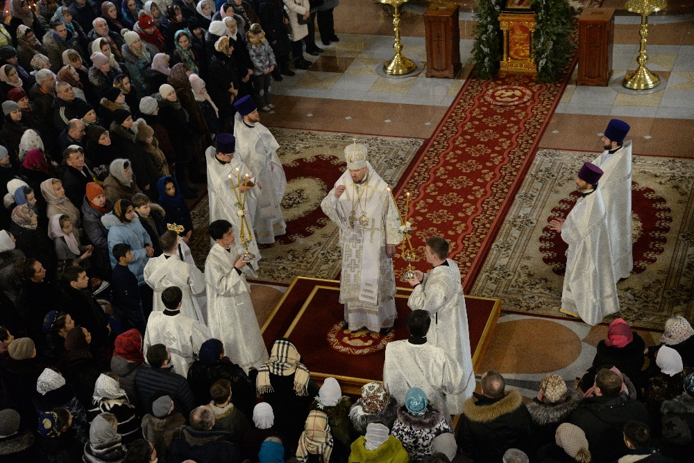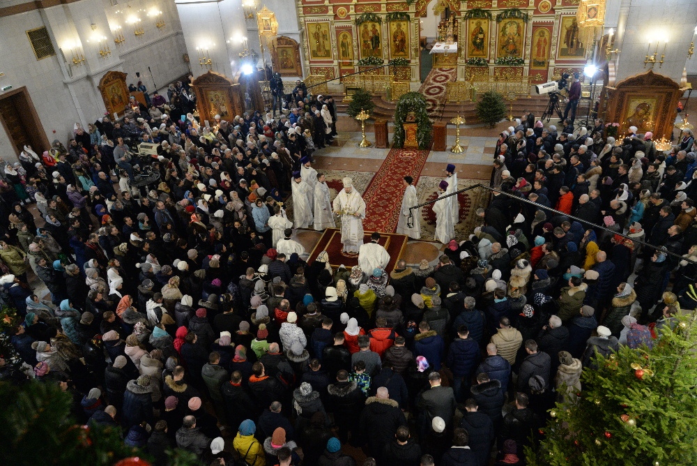 Божественная литургия в праздник Рождества Христова в Спасо-Преображенском кафедральном соборе 06-07 января 2018 г.