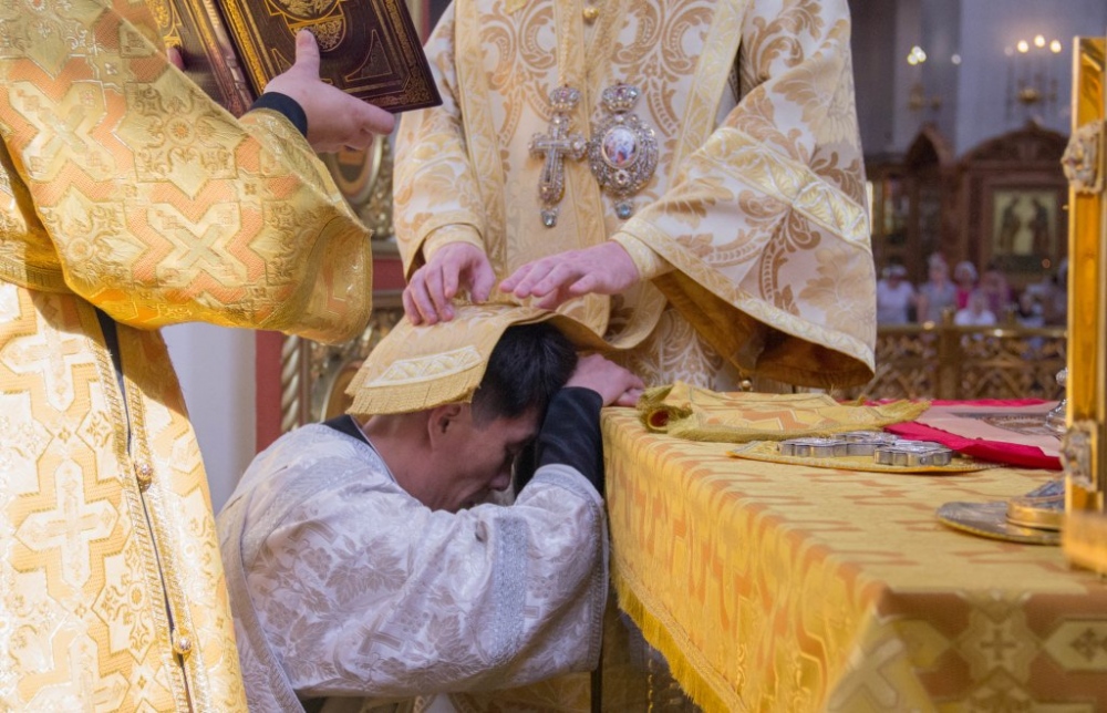 Митрополит Владимир совершил за Божественной литургией диаконскую хиротонию студента Хабаровской семинарии из Северной Кореи 29 июля 2018 года.