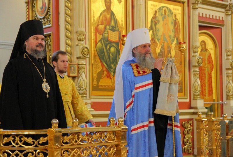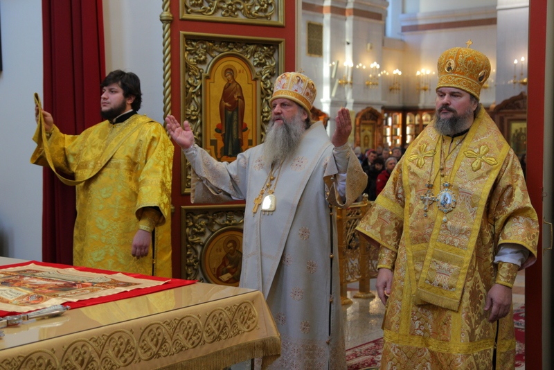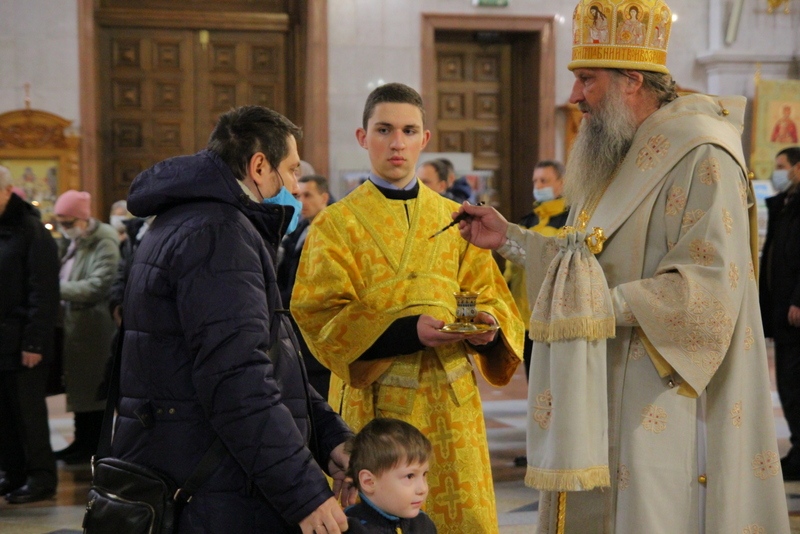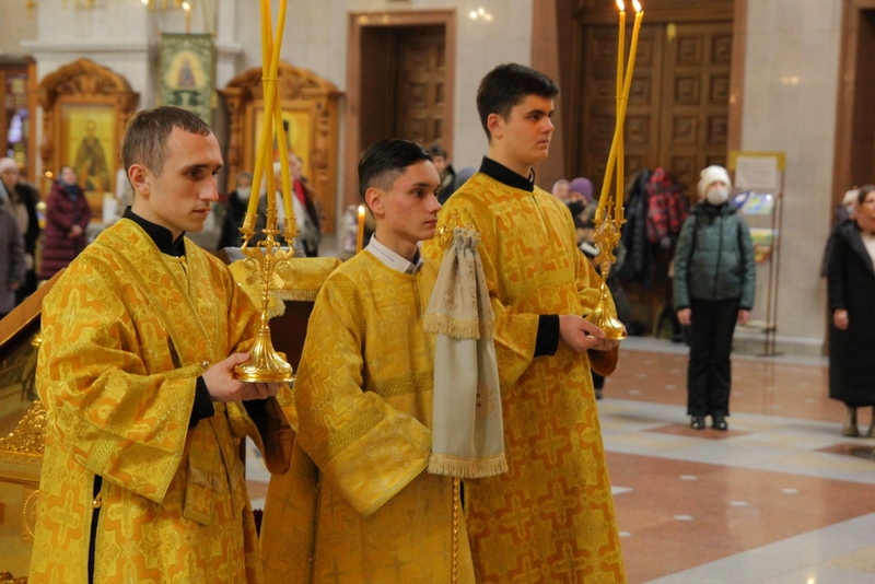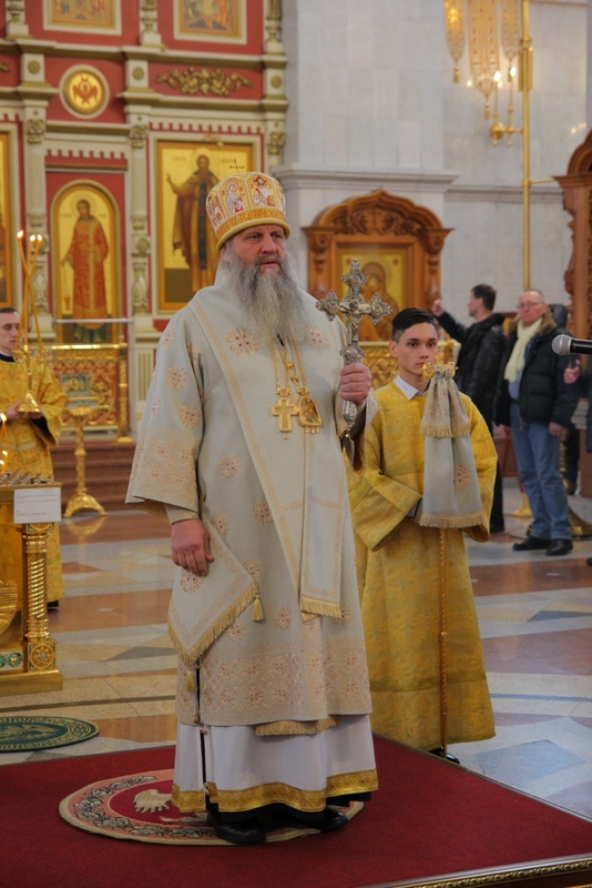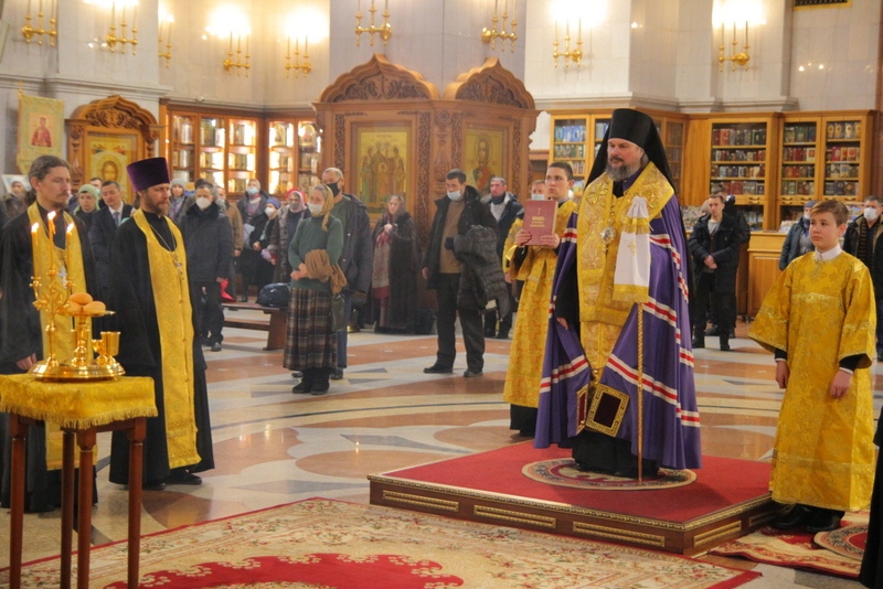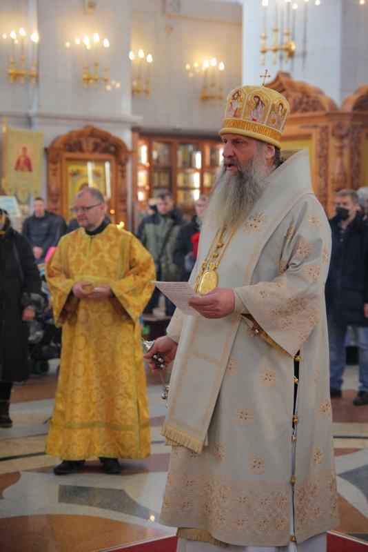 Митрополит Артемий в сослужении епископа Аристарха возглавил воскресное богослужение в кафедральном соборе 6 февраля 2022 года